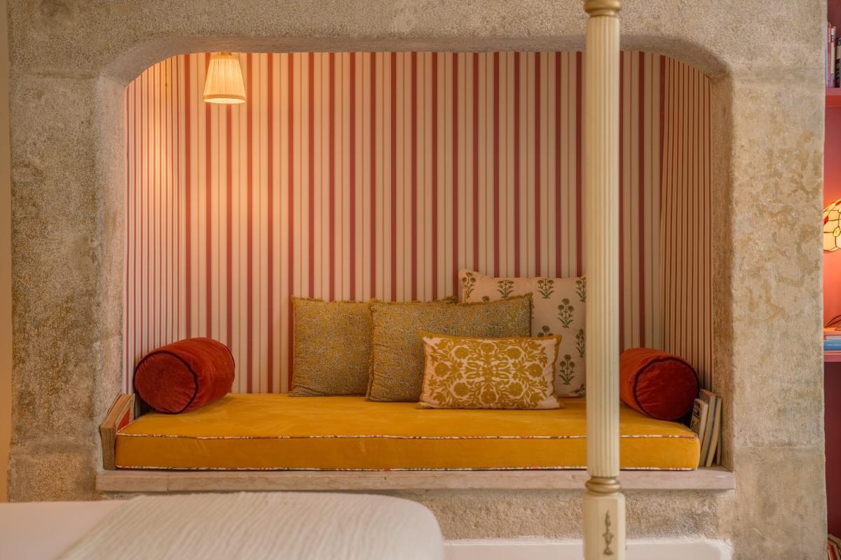 Bordeaux is a rich and intense color that conveys refinement and depth. When combined with gold details, it reinforces a sense of luxury and sophistication. The view of the interior courtyard evokes a sense of privacy and tranquility, creating an environment that feels like a refuge from the outside world, making it ideal for rest and disconnection.