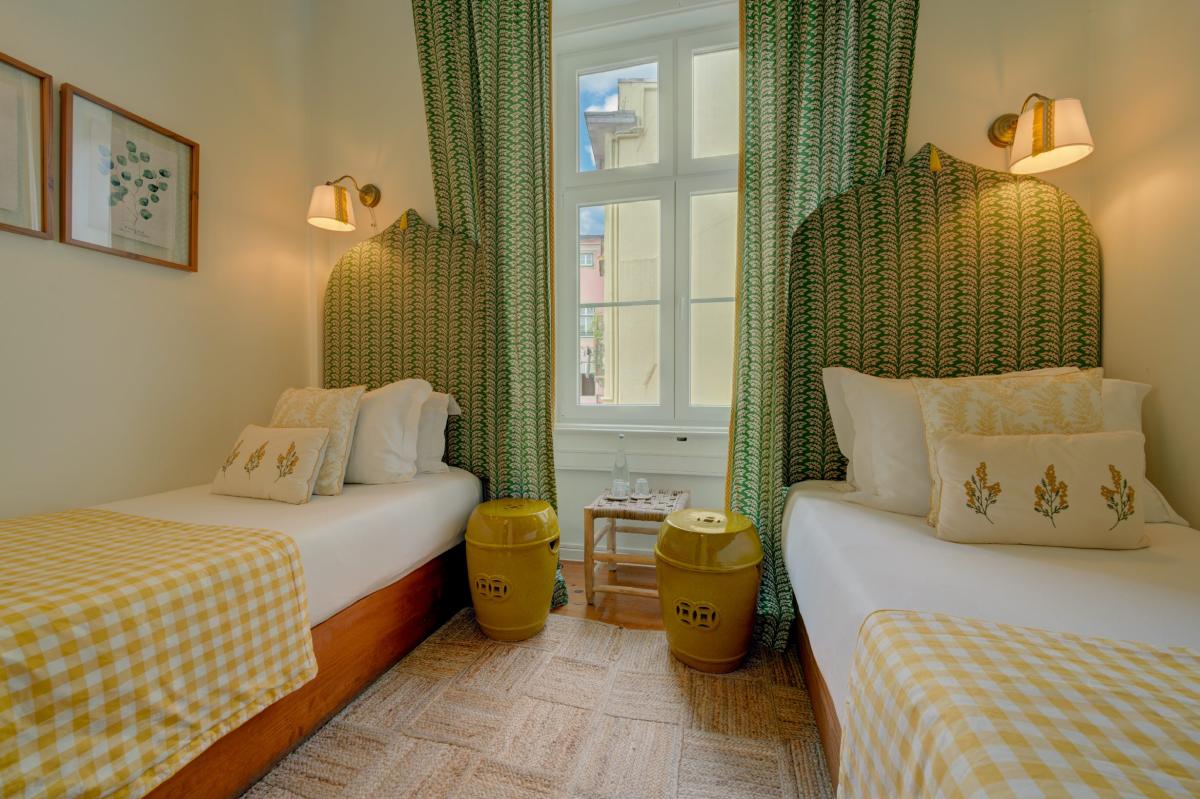 A small twin room in green tones, adorned with yellow details and a window facing an internal courtyard, evokes pleasant and stimulating sensations. Green brings freshness and renewal, creating a relaxing environment, while yellow infuses joy and vitality, promoting a welcoming atmosphere. The combination of these colors results in a warm space, perfect for socializing. The harmony between green and yellow increases the feeling of space, essential in small environments. The window allows natural light to enter, increasing the connection with the outside and promoting well-being. In short, this room offers a revitalizing and cozy environment, ideal for rest and coexistence.