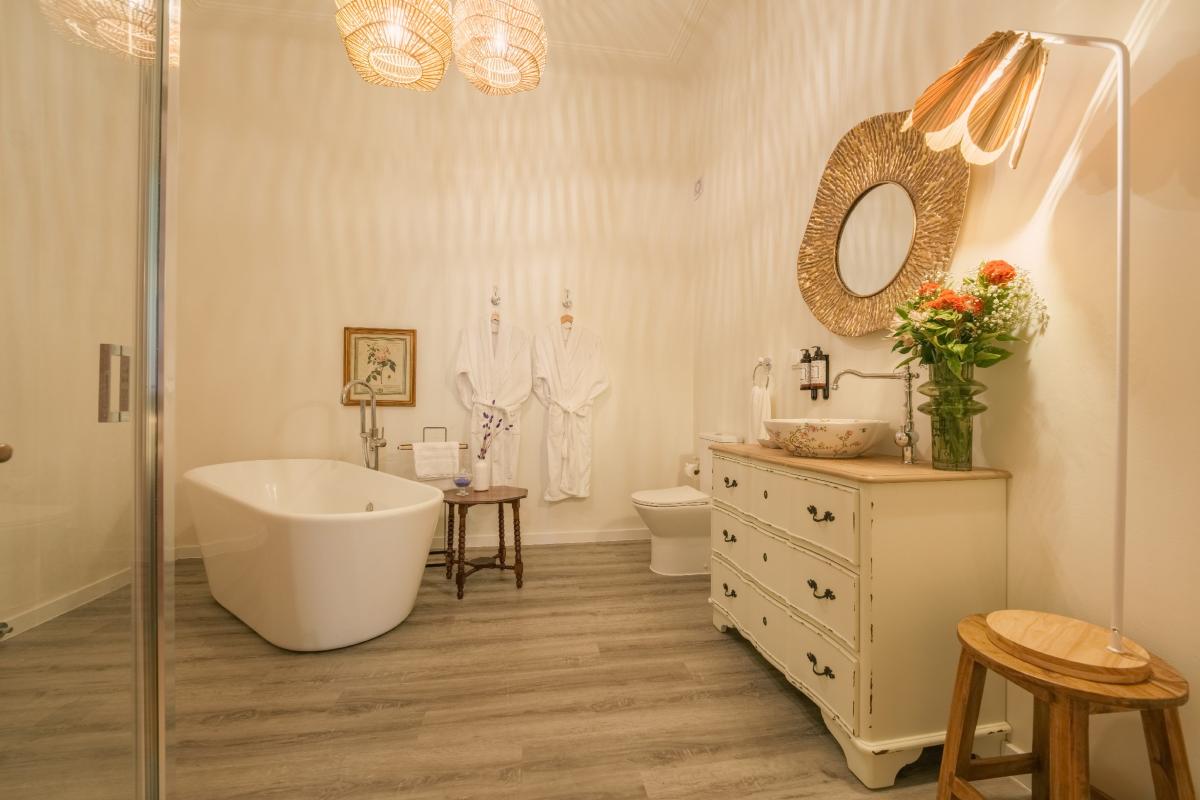 The second image reveals a room that exudes coziness, but with a vibrant color palette. The combination of these colors and decorative elements conveys a balance between energy and relaxation, where the environment invites both rest and contemplation. The view of the city and the bathtub reinforce a comfortable and peaceful retreat experience, ideal for a relaxing stay in the middle of the city.