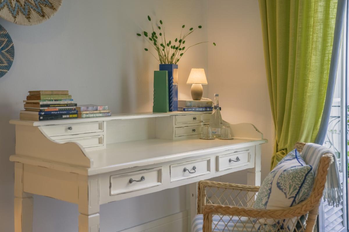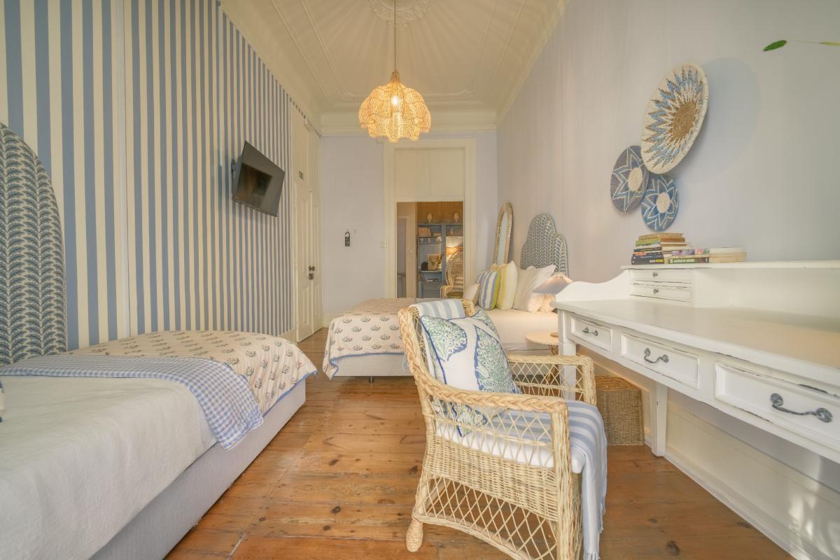 Um quarto decorado em tons de azul claro e verde lima transmite uma sensação de modernidade e frescor, ao mesmo tempo que evoca um ambiente acolhedor. O azul claro proporciona leveza e tranquilidade, enquanto as inserções em verde lima trazem energia e vitalidade ao espaço. As combinações geométricas na decoração adicionam estilo e personalidade, tornando o ambiente único. A pequena varanda voltada para a cidade permite a entrada de luz natural, criando um espaço arejado e conectando-o ao exterior. Assim, esta suíte harmoniza leveza, energia e modernidade, oferecendo um refúgio inspirador que promove relaxamento e criatividade.